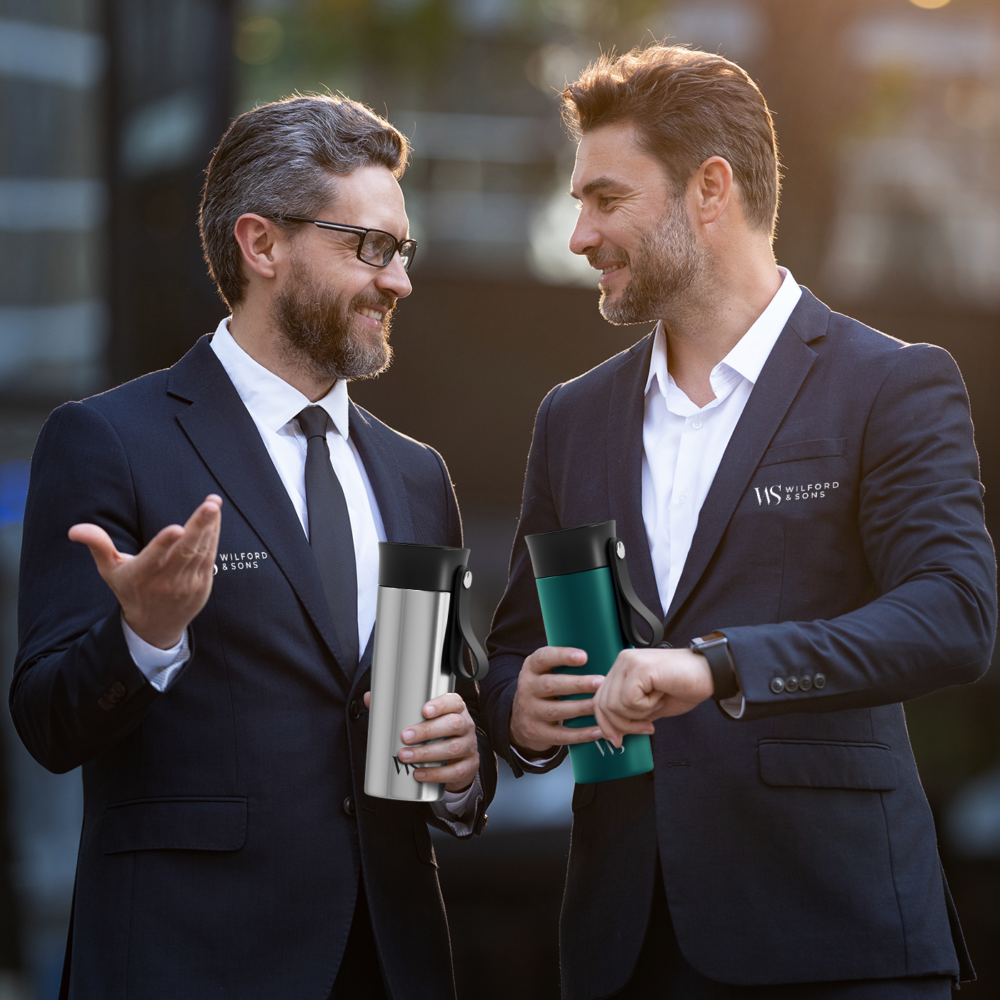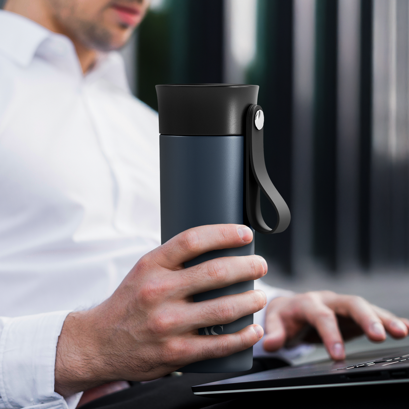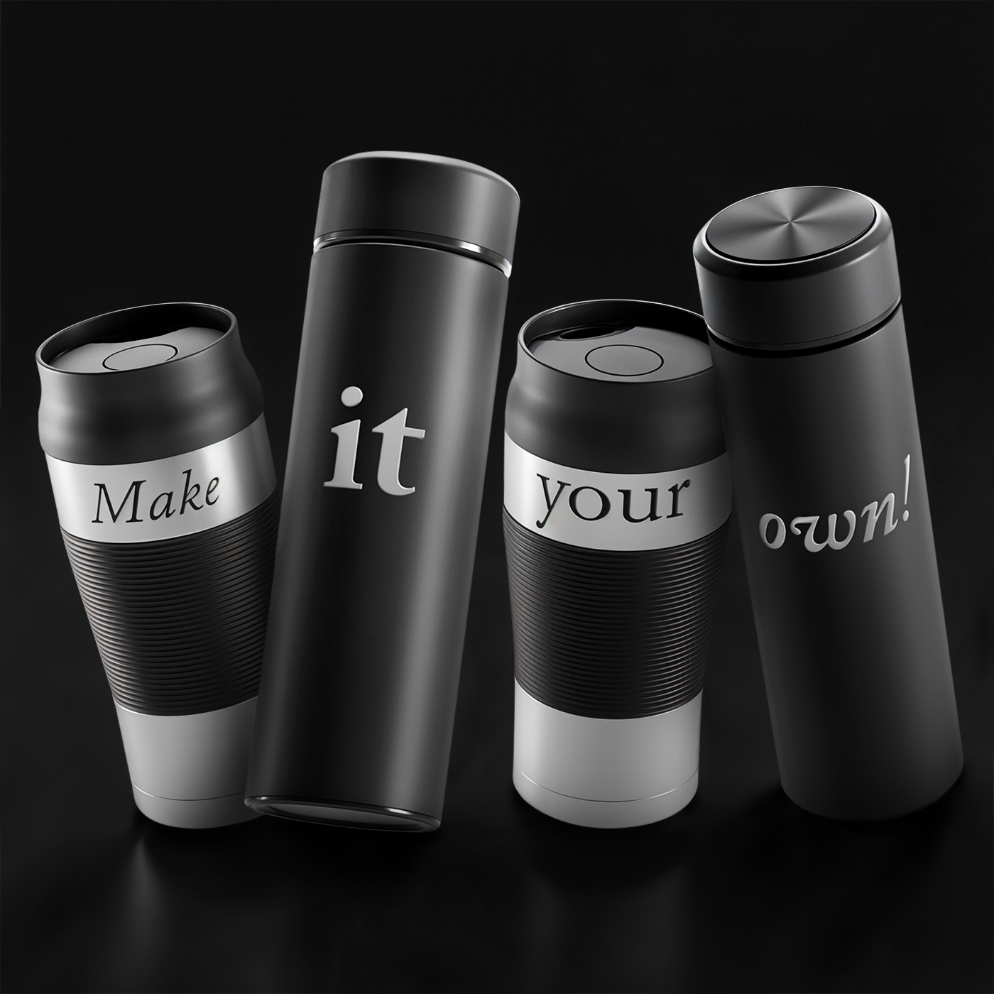 Design our Infuser Bottle or our Coffee Travel Mug with your logo, name or a complete desired design including packaging!